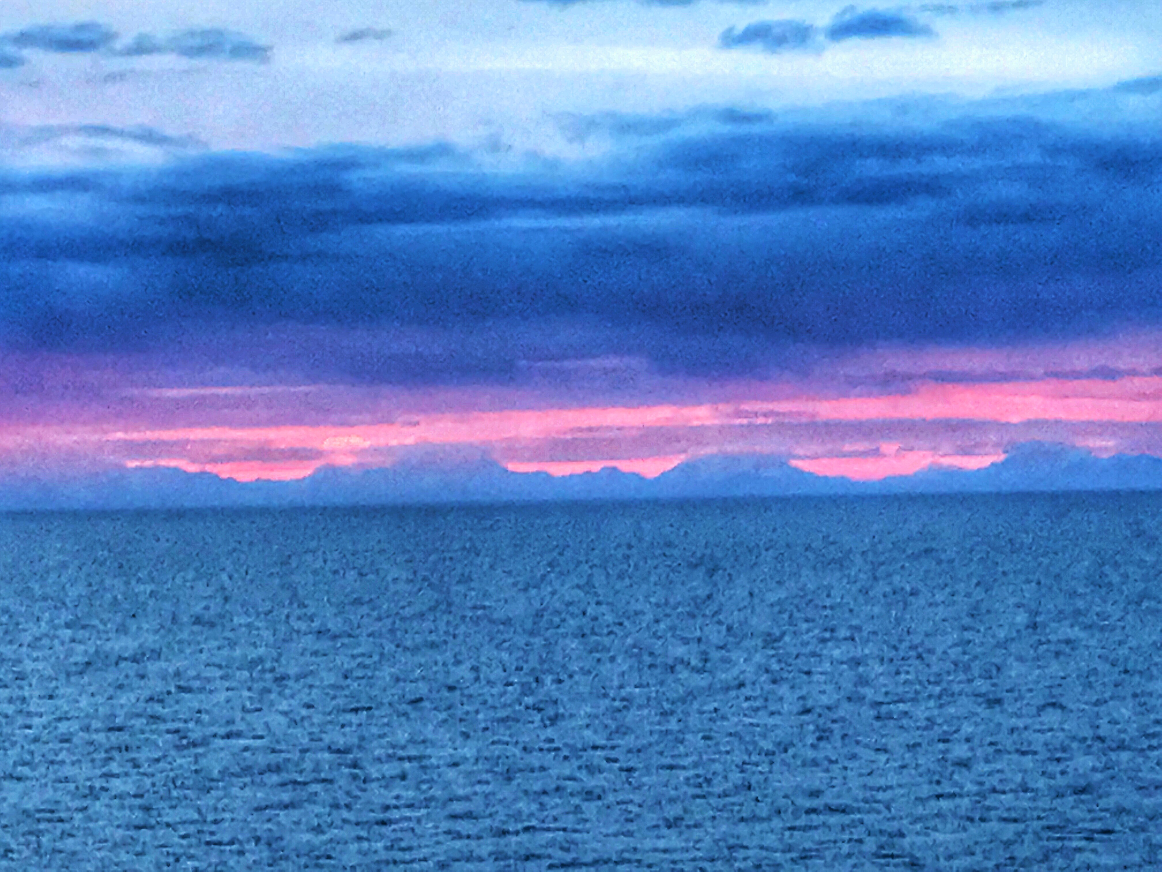 Because Alaska is so far north it stays light pretty much all the time. Farther north the sun never sets during the summer. For us it just got kinda dark at a late hour. The image below is one of the few “sunsets” that I saw. I took the picture at 1:30 in the morning after we had left Glacier Bay.