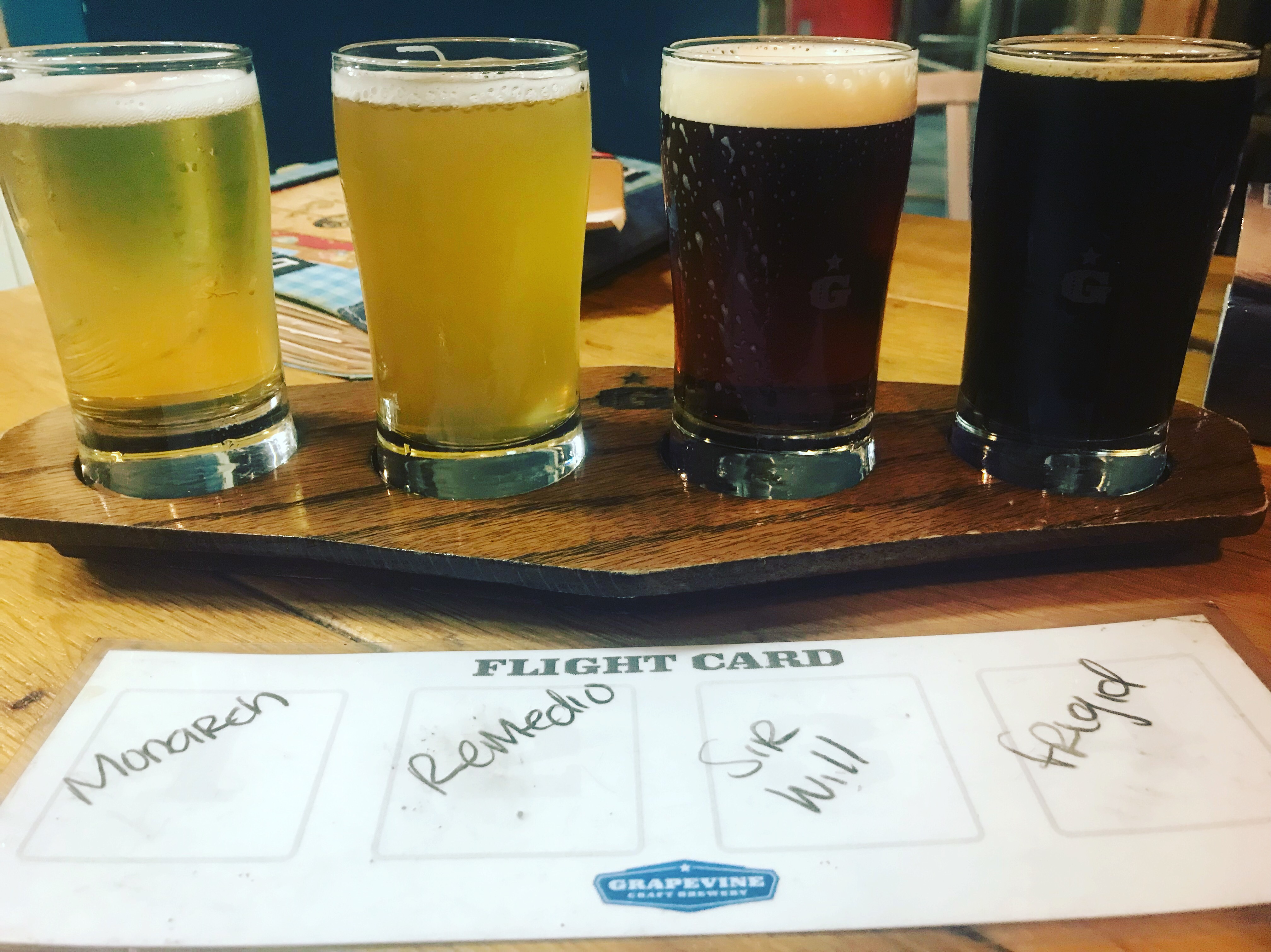 Our flight consisted of the Monarch, a German Pilsner; the Remedio Southwest Wit, a German-style witbier; Sir Williams on NITRO!, Texas Brown Ale; Frigid Underworld, Imperial double stout.