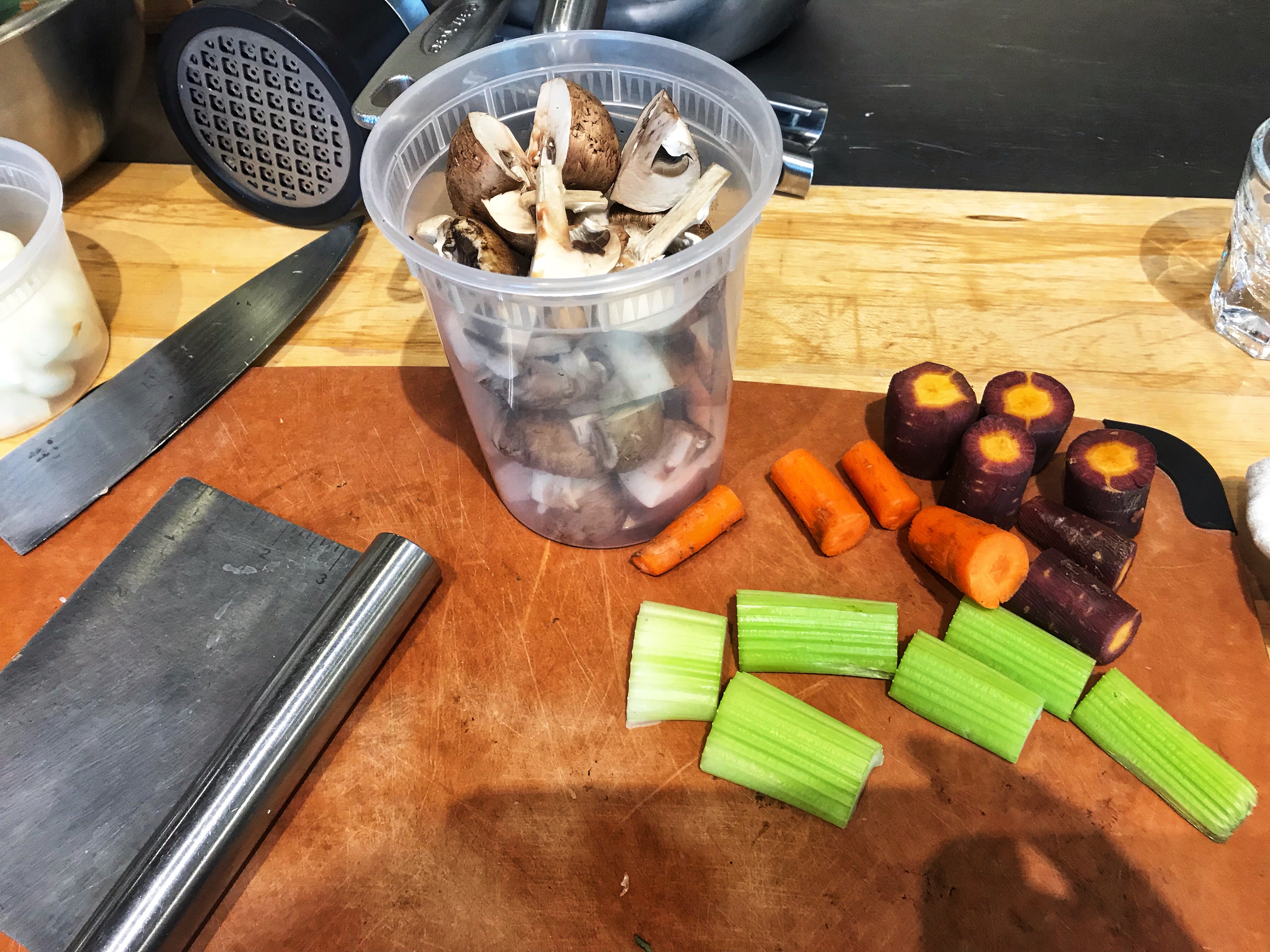 To go with our Coq Au Vin Blanc we made Truffle Pommes Puree, which sounds fancier than truffle mashed potatoes. I could have eaten a whole bowl of them. The truffle flavor was added by using both truffle oil and truffle salt. You can use just one but during the class we were given the opportunity to try both.