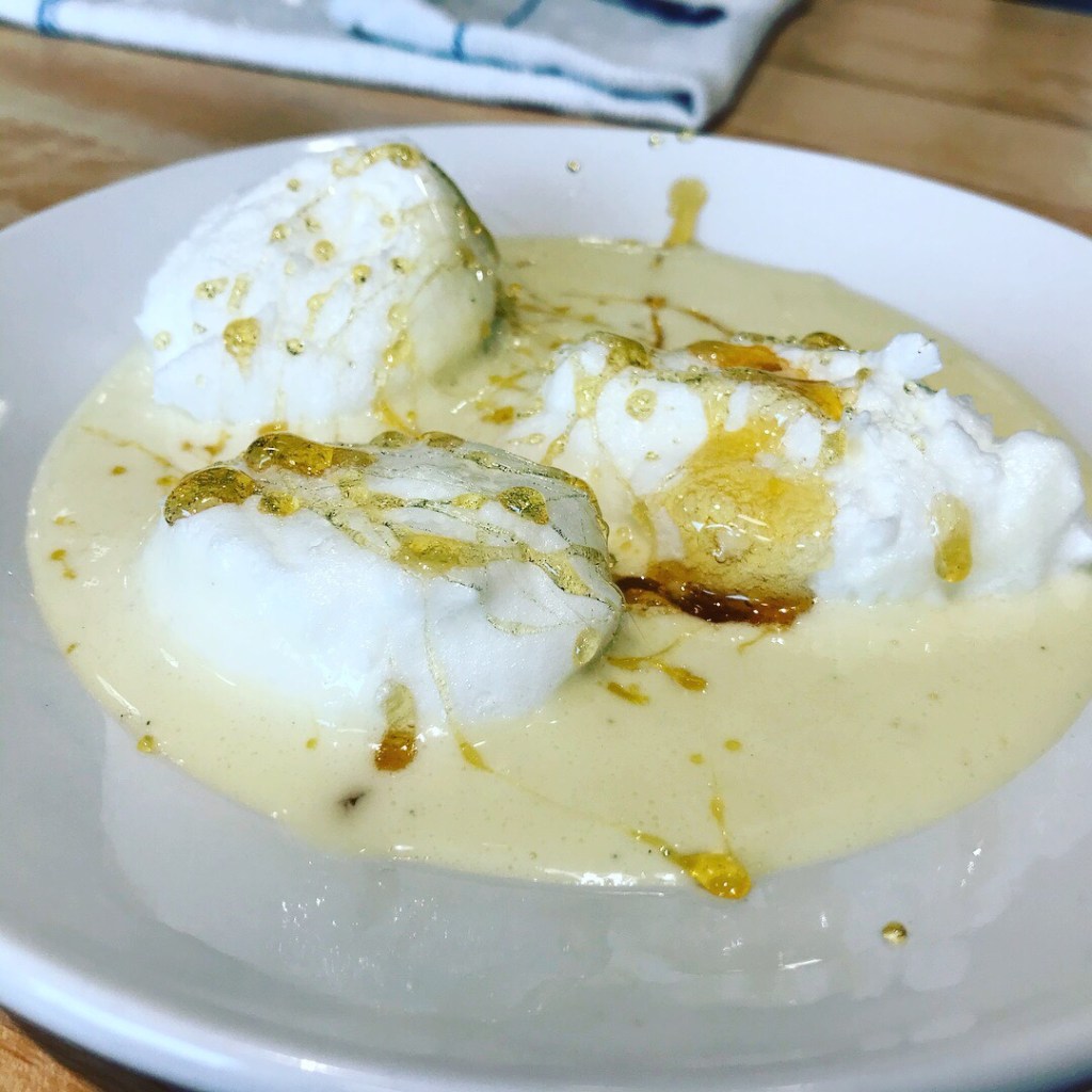 The dessert course was Floating Meringue with Vanilla Bean Creme Anglaise. Due to the time constrains the chef made the creme anglaise ansd caramelized sugar. We did make the floating meringue and cooked them in simmering milk. This dish wasn’t too sweet, just enough and it was creamy.
