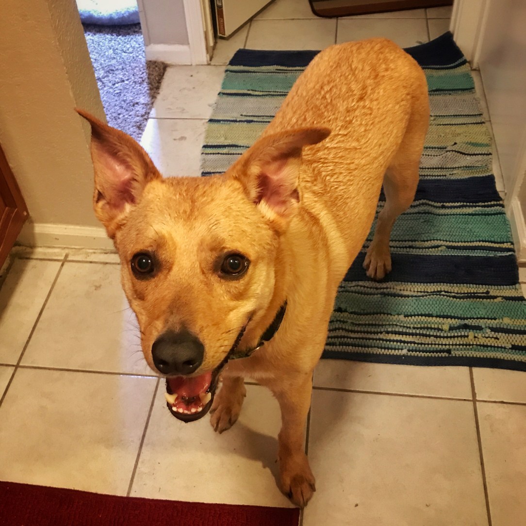 He was VERY happy to be out of the storm. Bear is not a fan of thunder.