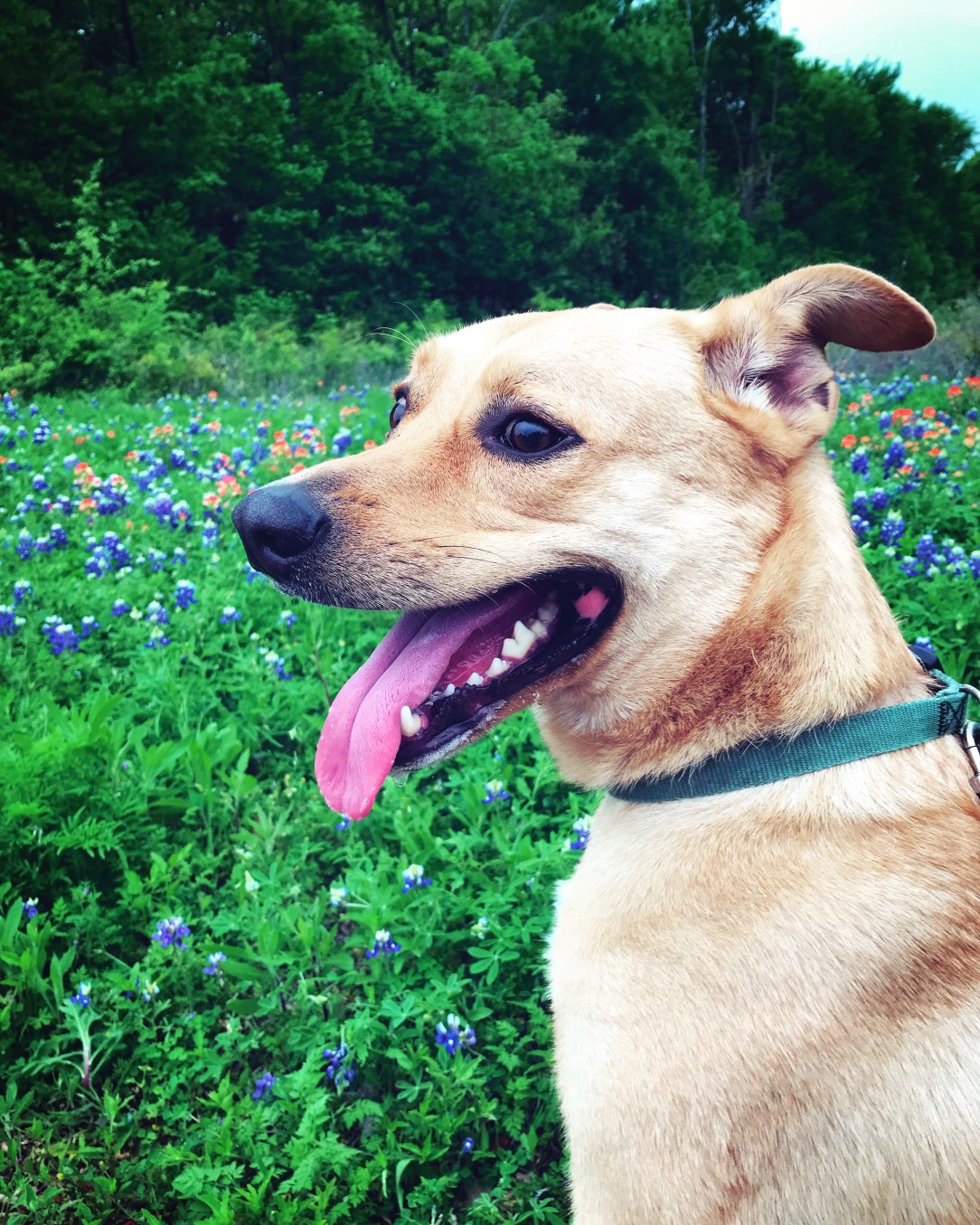 Bear and I came across this patch of bluebonnets and paintbrushes just around the corner from the house and I had to take his picture with them.