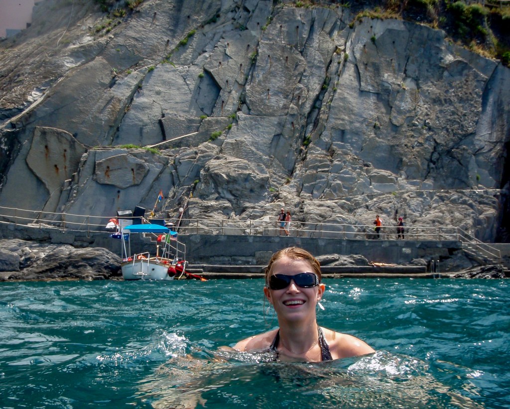 One of the things that I remember most about visiting Cinque Terre was swimming in the Mediterranean. It was after lunch and the day was so hot. The water was an translucent blue with hints of gray and it was cold, so cold. I’m not sure if it was so cold because the day was so warm or because it was just that chilly but it didn’t matter, we were swimming because, why not?