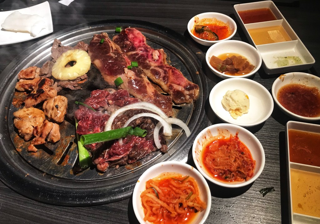 They have a whole, giant list of meat that you can order from but this being our first time eating at this restaurant we decided to go with our waiter’s suggestions. All of his suggestions were good and Keltin and I both ate WAY too much. At the table there is salad, dipping sauces, and kimchi which can all be paired with different meats. All the meals come with a side of white rice.