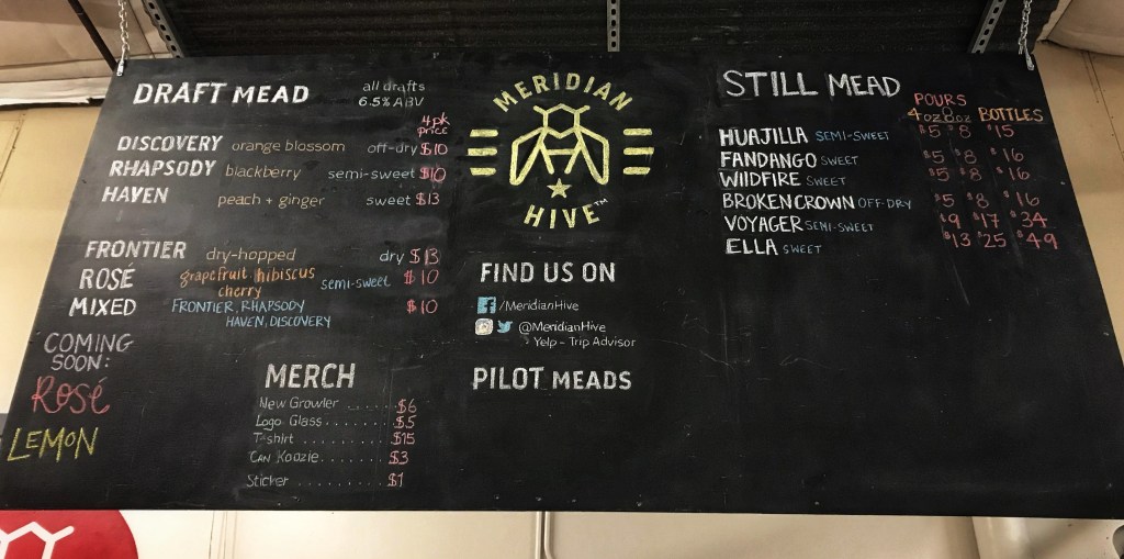 Part of the reason that I was so excited to visit Austin recently was that it meant I could finally visit Meridian Hive Meadery. I’ve been to a decent number of breweries and a growing list of wineries but not many places make mead but Meridian Hive makes some that is pretty darn good.