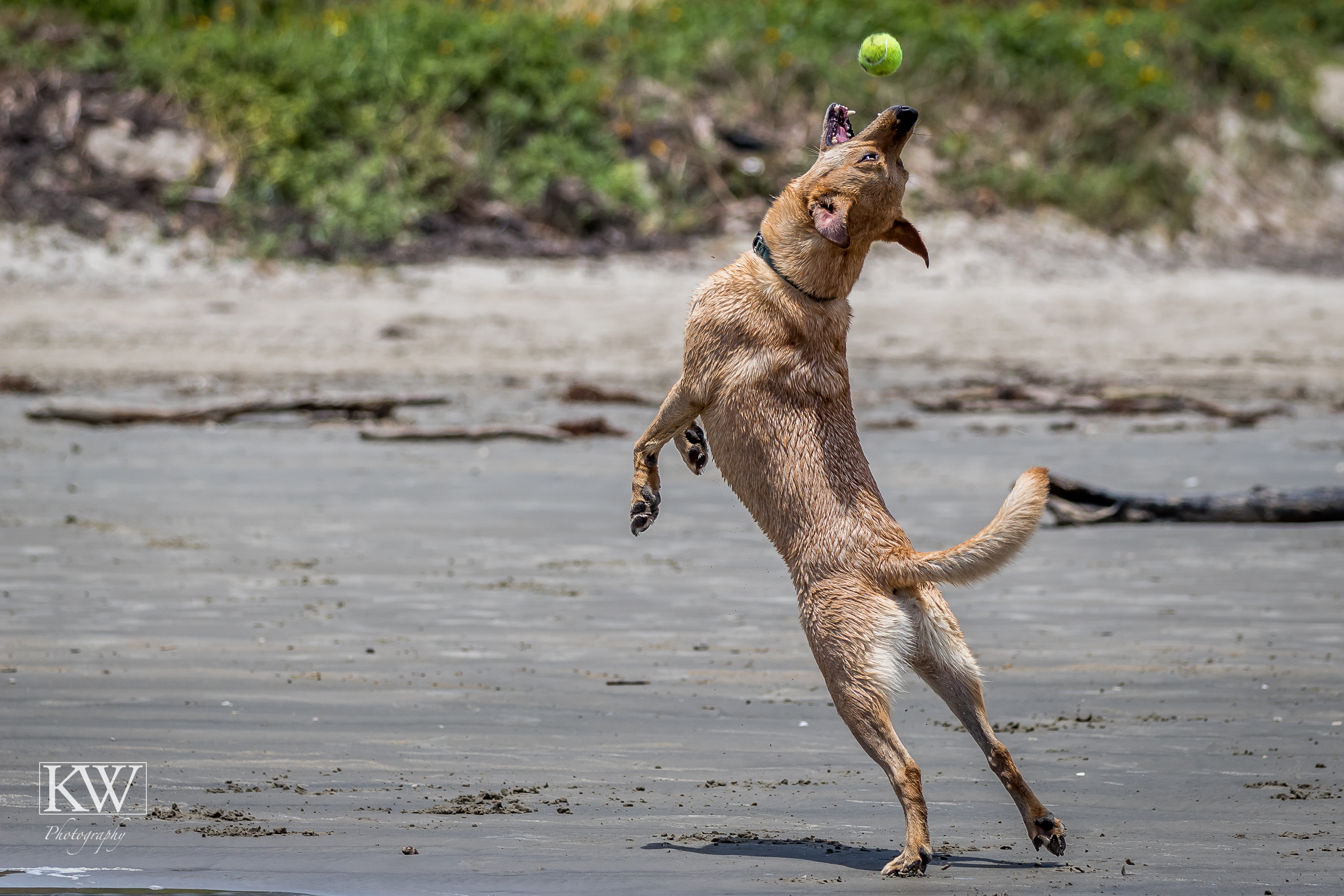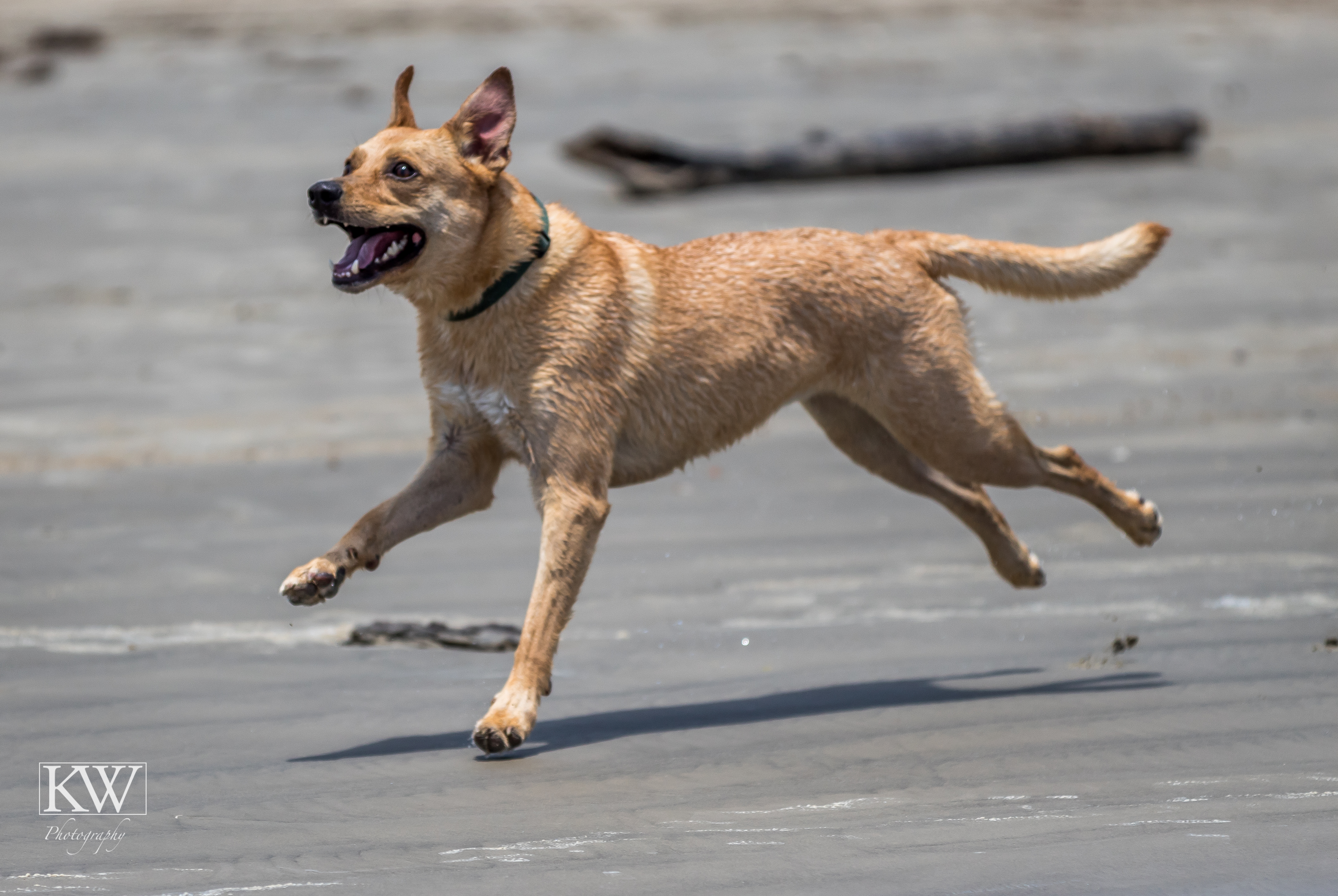 Bear loves to run and swim. Most of the time it is in lakes but he is a fan of the beach too.