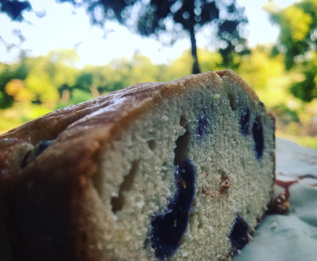 There aren’t many benches on this trail but one of the ones we came across early was a perfect spot to stop and enjoy some breakfast. We finished off the last of my lemon-blueberry bread.