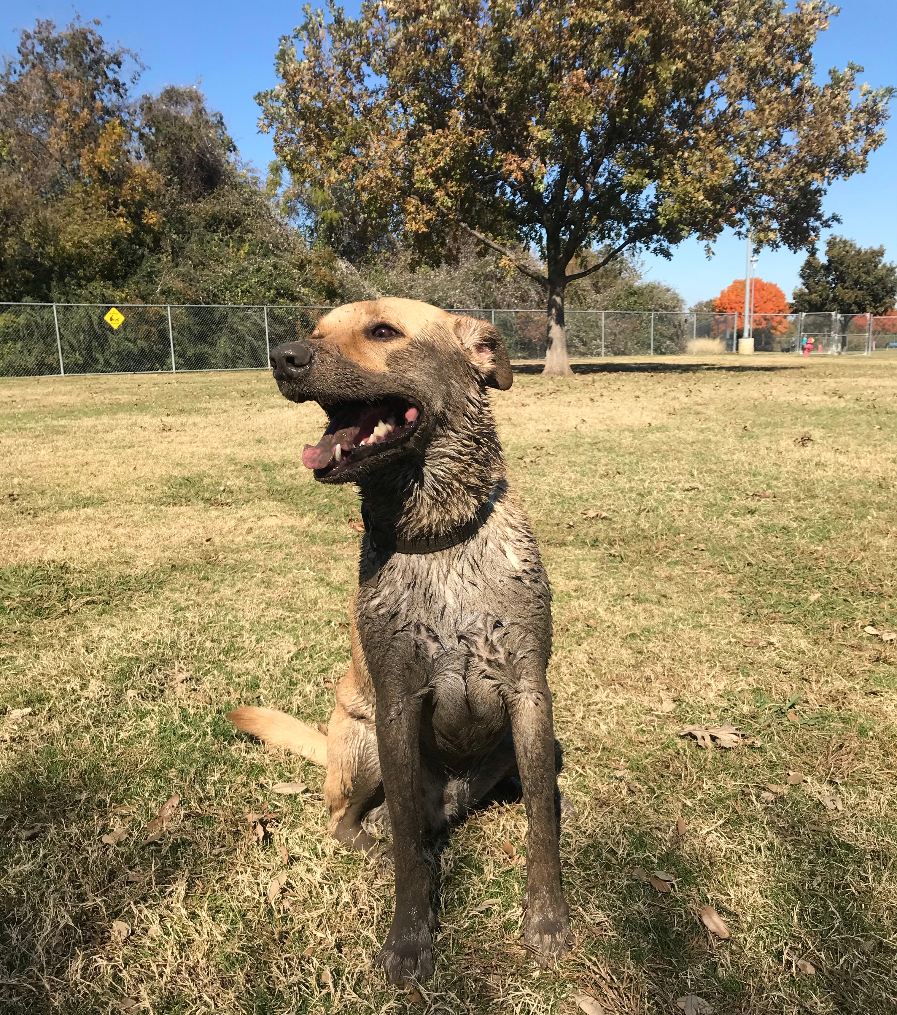 This actually happened last weekend but Bear was so proud of himself that I couldn’t not share. Bear and I tried out a different dog park, one without a pond. There has been some surprisingly cold weather in this part of Texas lately and the water at the park was shut off. Normally not a big deal, I carry water for him to drink. And then he found a muddy puddle….
