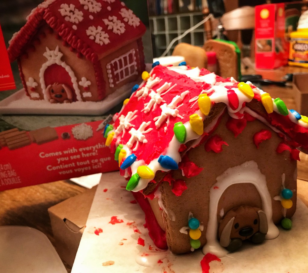 While in Kansas for a belated holiday activity we decorated gingerbread houses. My doghouse used a LOT of red icing and my work stations and hands were covered in icing the whole time. I honestly don’t remember the last time I decorated a gingerbread house but this was fun and I’d love to do it again.
