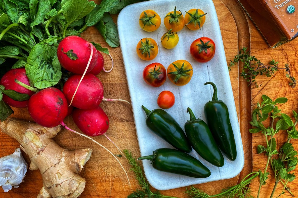 The radish and jalapenos we enjoyed on hoagie roll sandwiches with roast. Honestly, I’m not sure what to do with the tomatoes yet but I’m excited to try them! What new recipes are you trying this summer? Happy cooking!