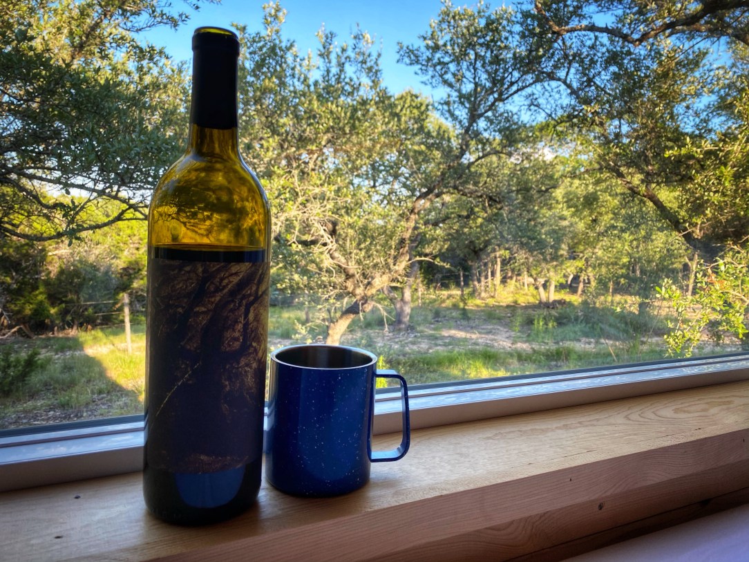 This part of Texas is know for its wineries and we couldn’t visit the area without checking out at least one but with social distancing in place we decided to get wine to go. We ordered online and picked up a bottle of the Syrah and the Blackberry wine at Wimberley Valley Winery to enjoy at the cabin.