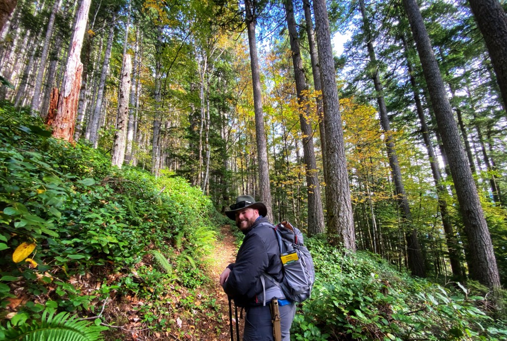 Our second hike after Hurricane Ridge was the Pyramid Peak Trail. We had intended initially to hike the Spruce Railroad trail but it was closed so we took a different trail from the same trailhead. To get to the North Shore Day Use Area you travel up highway 101 to the end of the lake before turning on Camp Junior David Road, this is dirt road that take you by private property. The road is narrow, be careful. There were a couple of other cars at the day use area but we did not see a single person on the trail, it was just us and the trees and the birds.