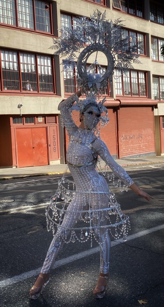 We left Seattle on Halloween and happened across this fantastic costume! The wonderful lady wearing it was happy to pose and show it off a bit.