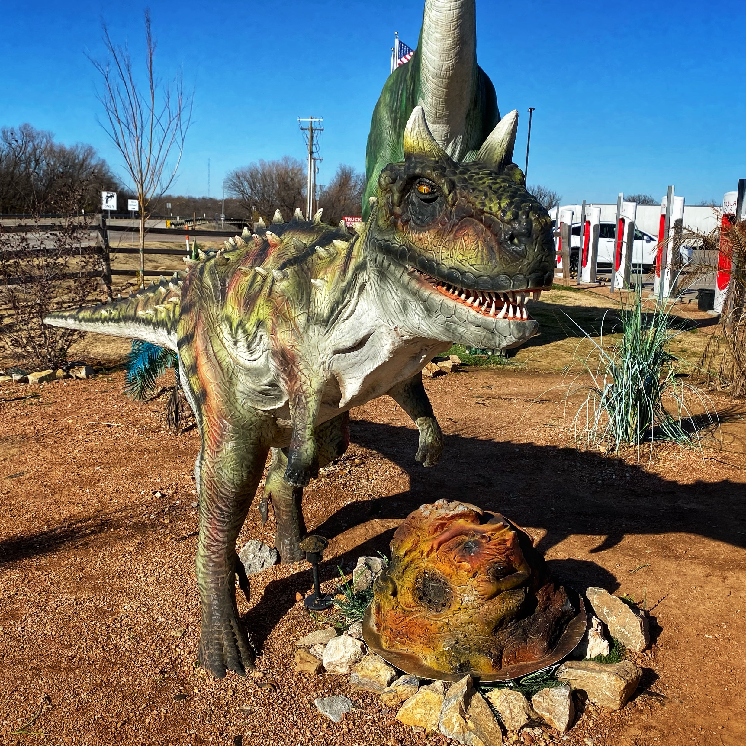We stopped here for two reasons gas and dinosaurs. There are a strangely large number of dinosaur figures on the sides of Texas roads or in fields. We must have an odd love of dinosaurs. There is a green brachiosaurus somewhere off HW 287 and recently while hiking down near Navasota, TX we went past a number of large plots of land with cattle, horses, and various random dinosaur statues staring out towards the road.
