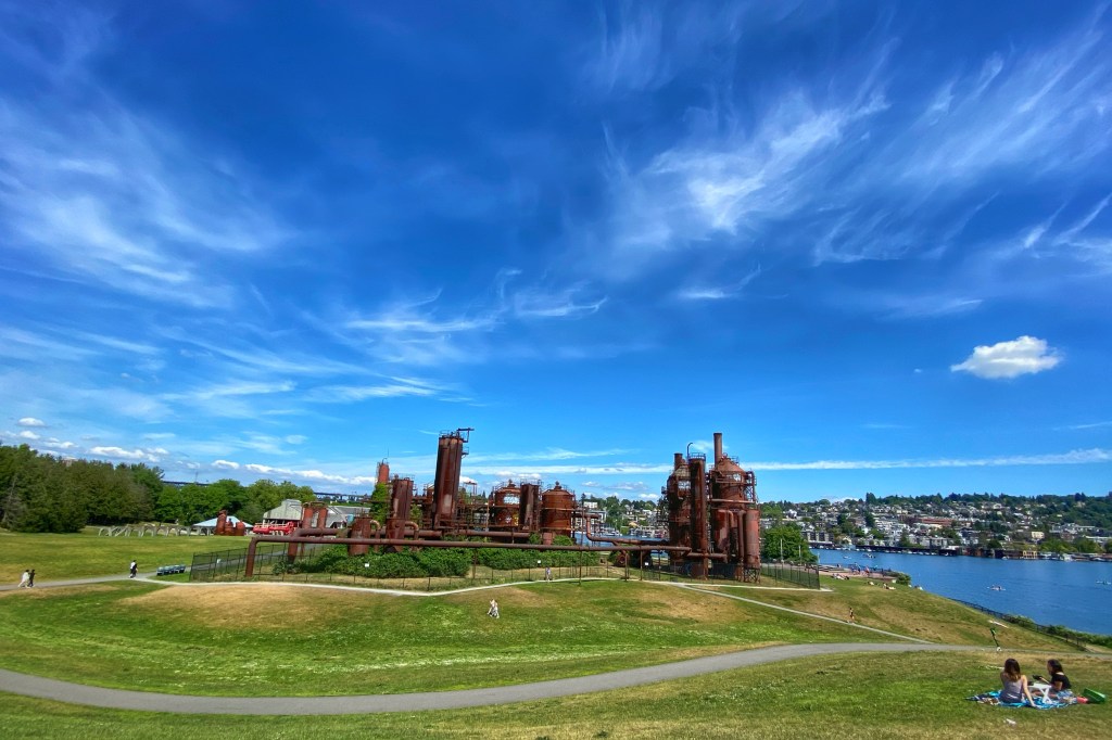 The park is free to get into and the people watching is great. We saw a ton of kayakers and paddle boarders on the lake along with a float plane and a steam powered hot-tub boat. Yes, you read that correctly. We could see the smoke and smell it from the park. Relaxing at the park was a great way to end our day in Seattle before heading south towards Mount Rainier.