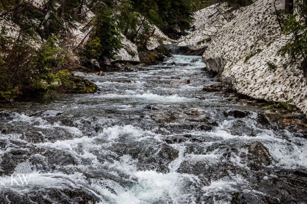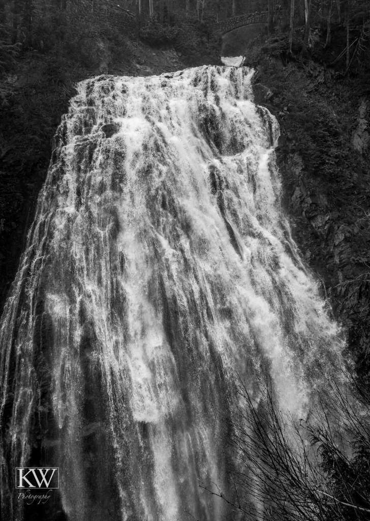 The last waterfall on the list for this day was Narada Falls. You can see some of Narada Falls from the bridge near the parking lot but not much of it. The best view of the falls is from the overlook that is a .1 mile hike away. This is not a far hike, unless the path is covered in several feet of fairly hard packed snow. We slipped and slid a bit but made it to the overlook that was – thankfully – free of snow. I don’t recommend the slipping through the snow unless you have the right foot gear. A gentleman that went down before us slipped and dropped his car keys. Thankfully I found them and was able to return them.