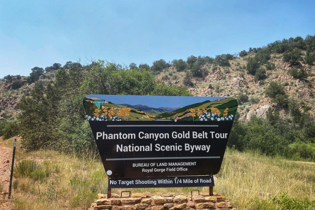 Most of Phantom Canyon Road drives through land managed by the Bureau of Land Management but does pass through some privately owned section. There are signs on the road that mark when moving from public to private land and back. You can camp in specific areas of Phantom Canyon and according to FreeCampsites.net it is free to camp here. If you want to know more about FreeCampsites.net, check out my backroads road trip post about where to stay. There are a couple of restrooms in the canyon but they are far into the drive and far apart. I also, don’t remember them having running water so bring plenty and hand sanitizer. I also suggest bring a snack as the drive in either direction is a long ways from anything – which makes this a fantastic escape.