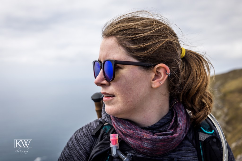 There are a couple of main trails up Slieve League. Barry took us up the back of the cliffs along a trail called the Pilgrims Path and then along range to the highest part called the One Mans Pass. This is about a 6 mile hike. There is also a path along the edge of the cliffs that a charity hike took the same day. We saw them walking along the cliffs in the early morning fog, the scene looked like something out of The Fellowship of the Ring.