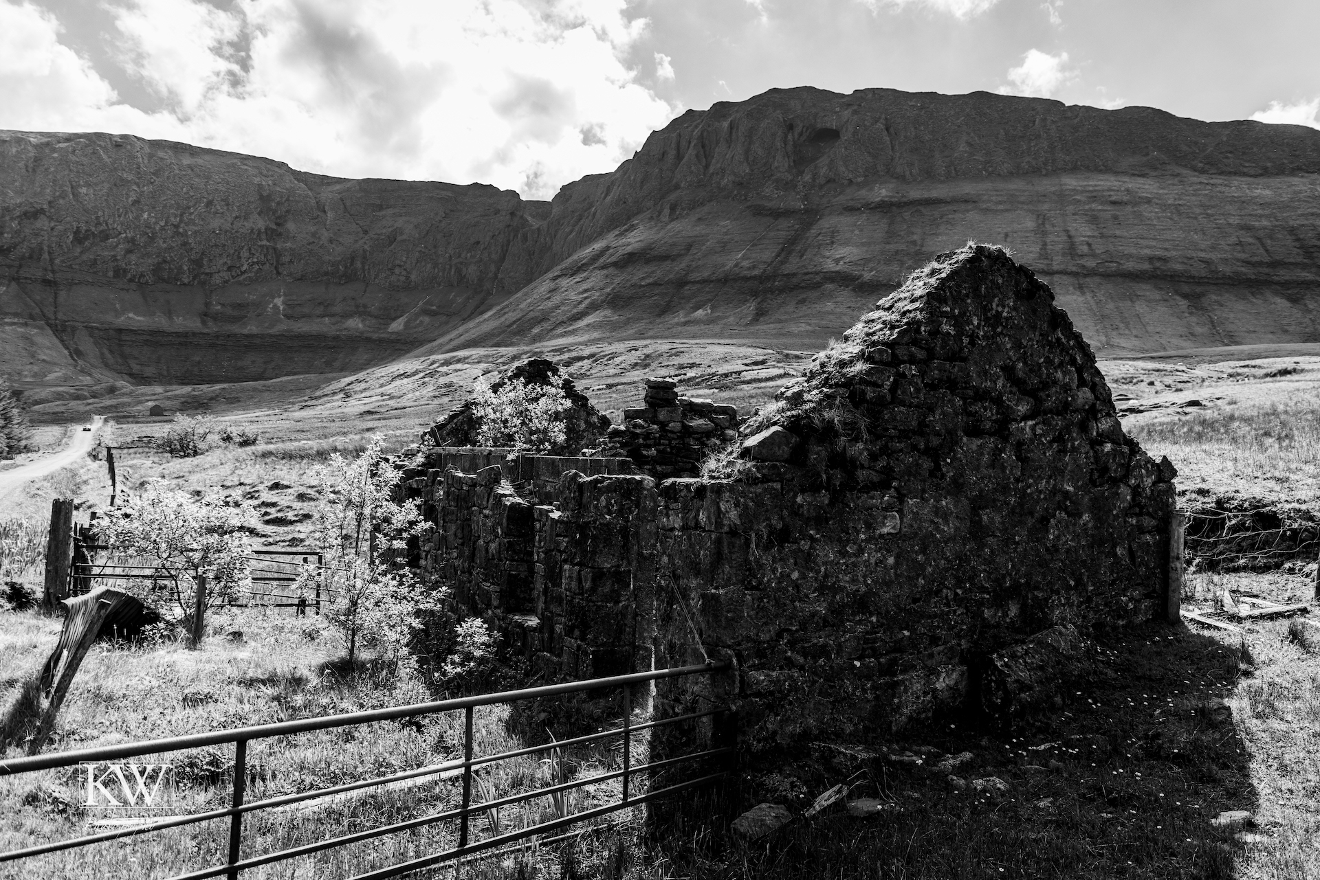 While hiking Slieve League the day before our guide, Barry, suggested that we should drive through the Gleniff Horseshoe on the way to Galway. We could see one of the mountains, Benbulbin, – a large flat topped mountain, from the top of Slieve League across Donegal Bay. We decided this would be a reasonable stop along our road trip, the only issue was, Barry just called it a horseshoe and we had to figure out where it was exactly. This wasn’t too difficult but we did wander down some back country lanes and wonder if we were going in the right direction.