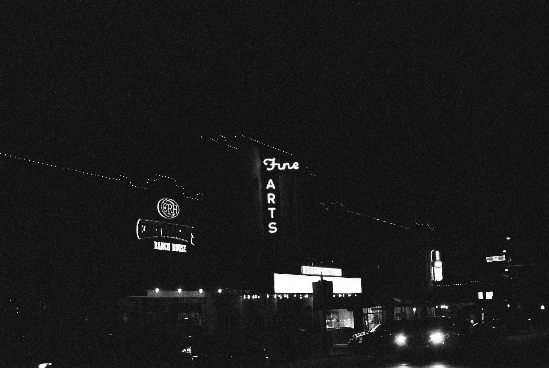 The first four photos I shot on Kodak 3200ISO film. This is the same film I used to shoot the Tarleton v Baylor game. This film is great for night photography because it is very light sensitive. The issue with night photography on film is that if the film is not sensitive enough then you really have to increase the shutter speed, if the shutter speed is too long (without a tripod) then the images tend to come out shaky. High ISO film lets me use a reasonable shutter speed (typically 1/60) in really dark areas.