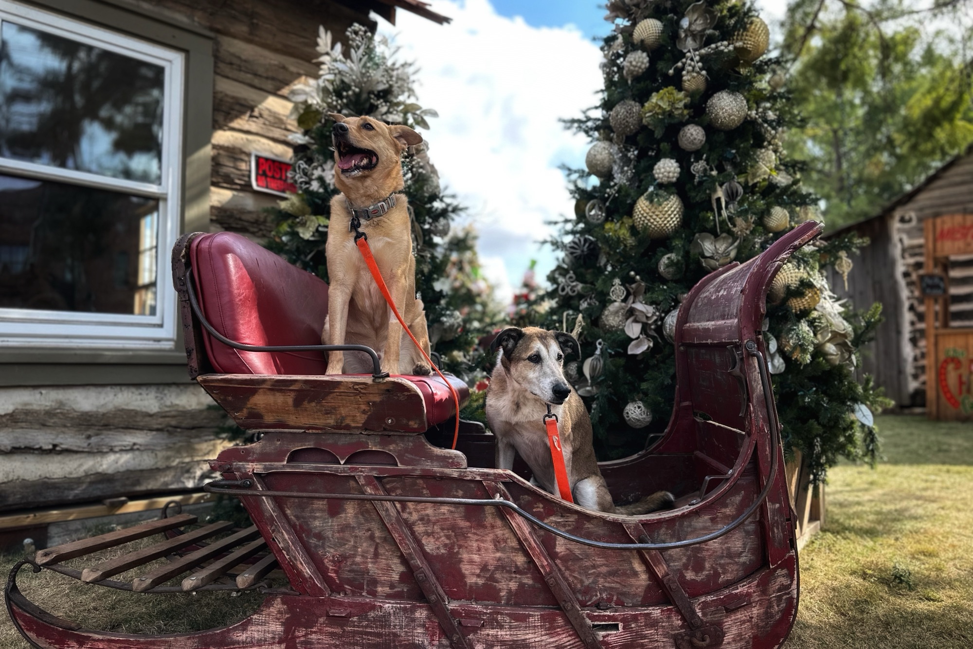 Main Street Grapevine likes to think of itself as the Christmas Capital of Texas. In the spirit of that idea they have all of these Christmas themed photo opportunity spots. In the evenings Main Street is packed this time of year but during the day isn’t too bad. I took it as an opportunity to have a photoshoot with Bear and Ava. They were so good – even if Bear did slobber on everything.