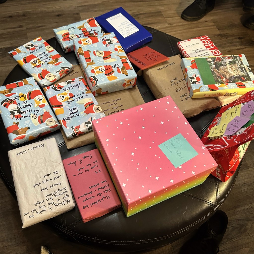 Pachouli Joe’s is one of my favorite local indie bookstores and for the holidays where they did a book exchange. Customers wrote out a list of books that they wanted and bought someone else a book from their list.