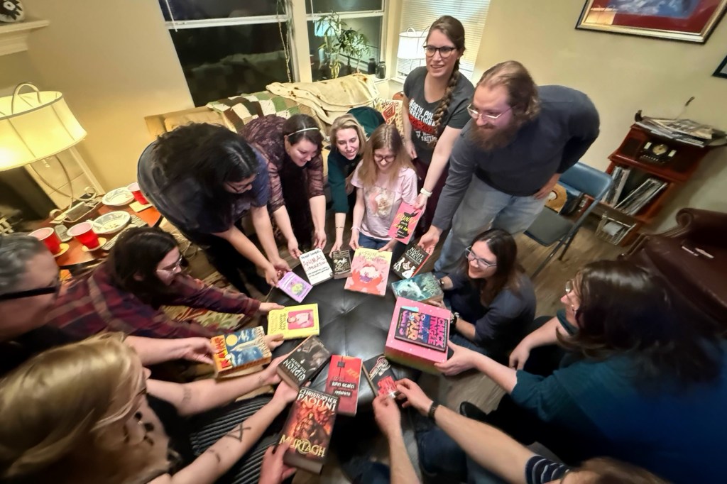 I bought someone Mistborn: The Final Empire because the whole series is a great read. Someone selected Consider Me from my list. It’s a hockey romance, I have a preferred romance type apparently. Once all the books were in the shop had a book exchange party. We all opened our books and got to meet other people that enjoy reading. It was a fun couple of hours and a good way to meet other readers in the community.