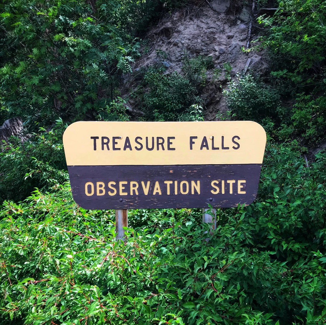 On the way up to Wolf Creek Pass out from Pagosa Springs there are a couple of places to stop. One is a scenic overlook that was closed while we were there. The other stop is Treasure Falls. This is a short trail (.6 mile loop) with a small parking lot that gets busy on