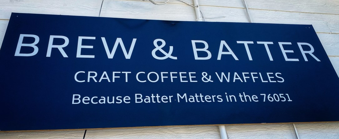 A new little restaurant opened in Grapevine. Keltin and I love supporting local and decided to give it a try for brunch one morning. Brew and Batter is all about coffee and delicious waffles. Chilling on their patio I enjoyed a nice Rose Cold Brew while Keltin had the Americano. The cold brew was different